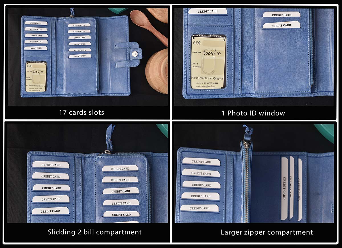 - Card Slots: Features dedicated card holders to neatly store your credit cards, debit cards, and ID.