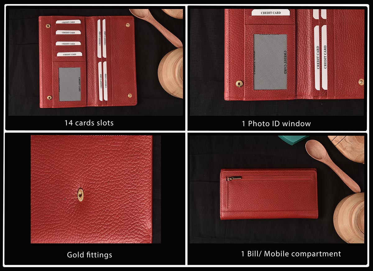 Drocha Genuine Leather Mag Dot Wallet For Women (Red)